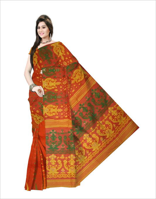 Pradip Fabrics Ethnic Women's Tant Tussar Silk Red and Yellow Color Saree