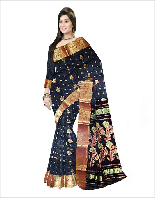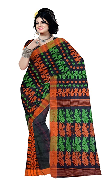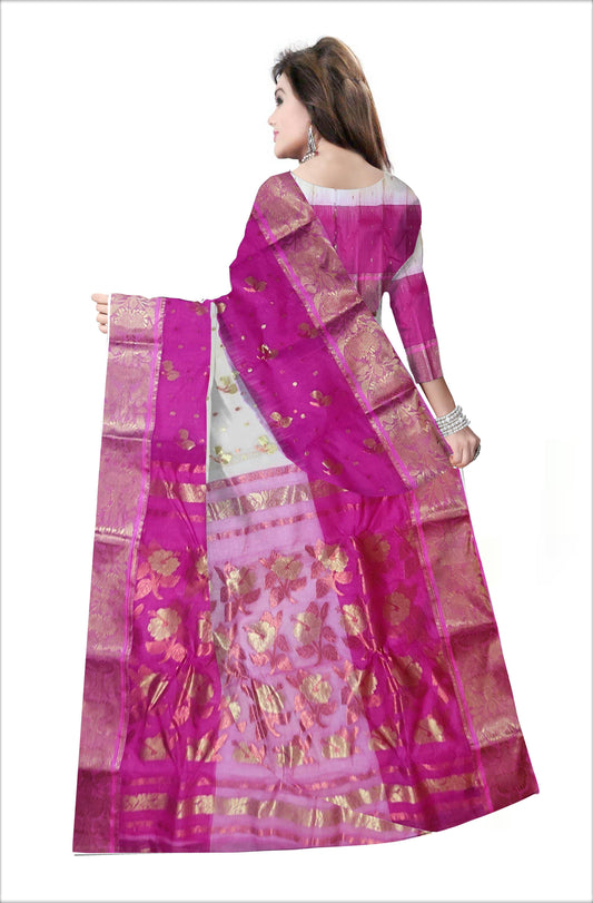 Pradip Fabrics Woven Tant Cotton All Over Dhakai Jamdani MulticolorSaree