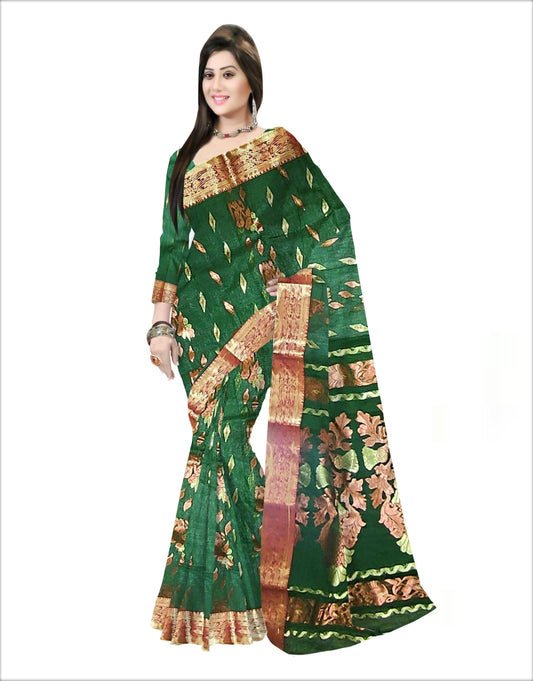 Pradip Fabrics Woven Tant Banarasi Deep Green Color Saree