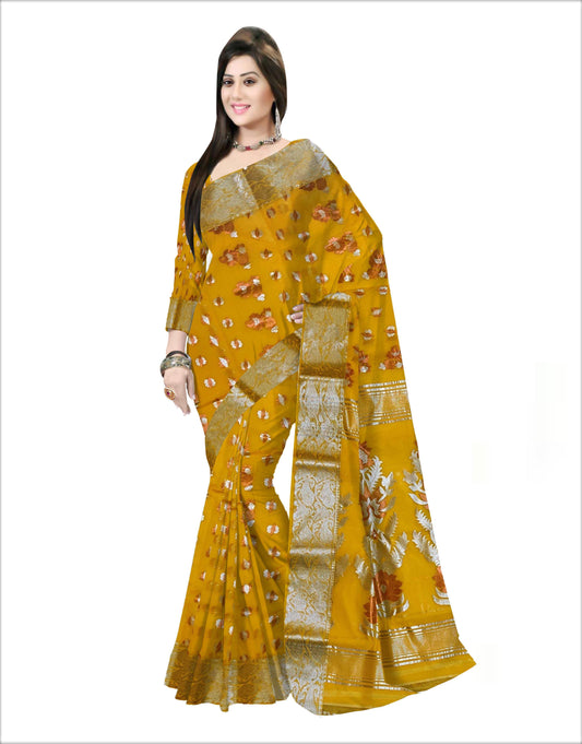Pradip Fabrics Woven Tant Banarasi Yellow Color Saree