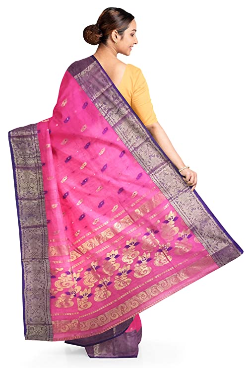 Pradip Fabrics Woven Tant Cotton Pink Saree