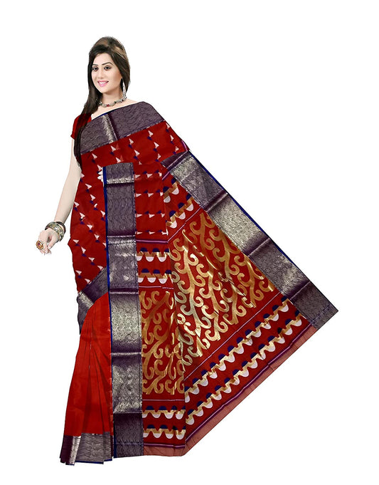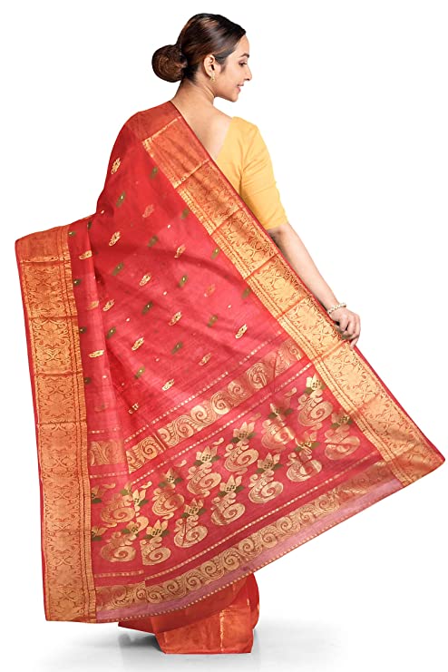 Pradip Fabrics Woven Tant Cotton Red Saree