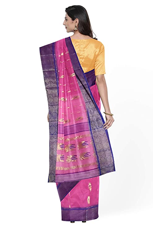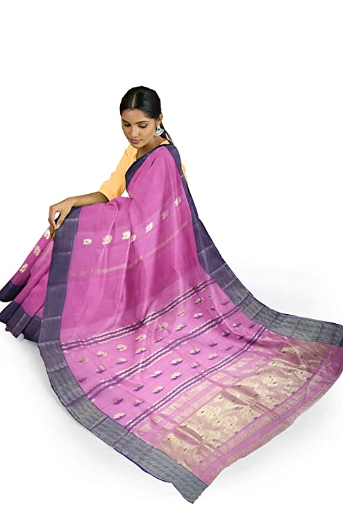 Pradip Fabrics Woven Tant Benarasi Blue and Pink Saree
