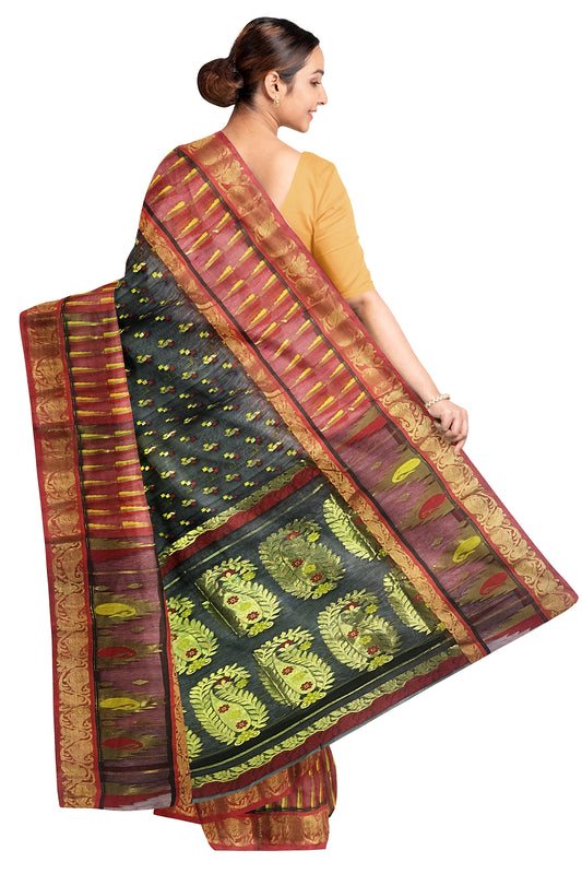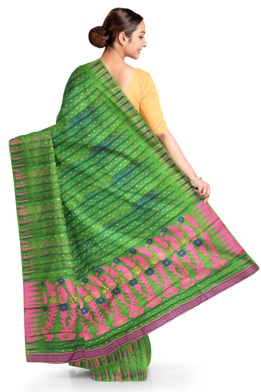 Pradip Fabrics Ethnic Women's All over Tant Jamdani Green Color Saree