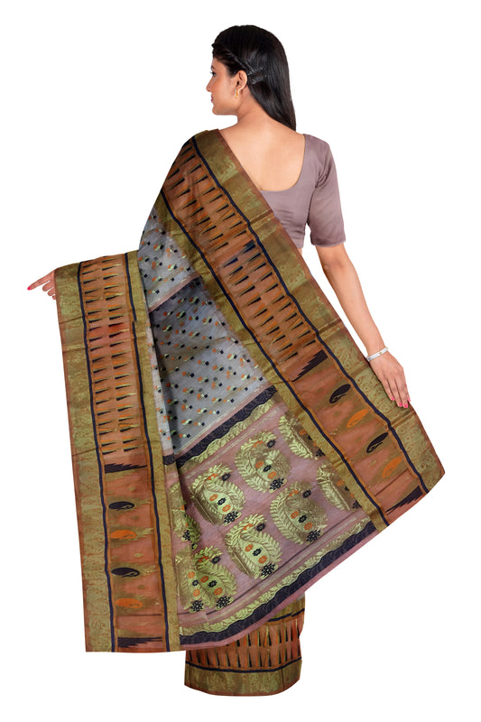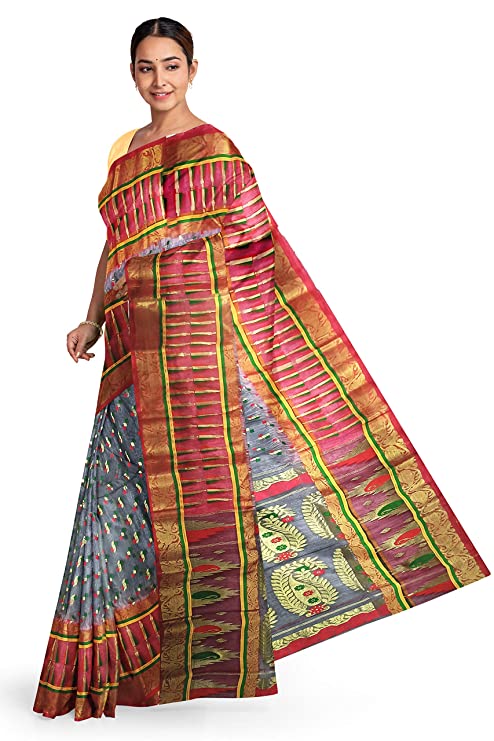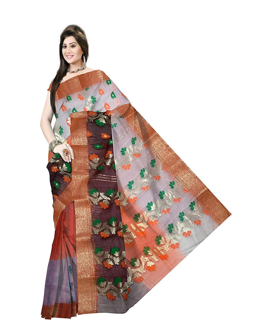 Pradip Fabrics Ethnic Women's All over Tant Ash and Red Color Tant Benarasi Saree