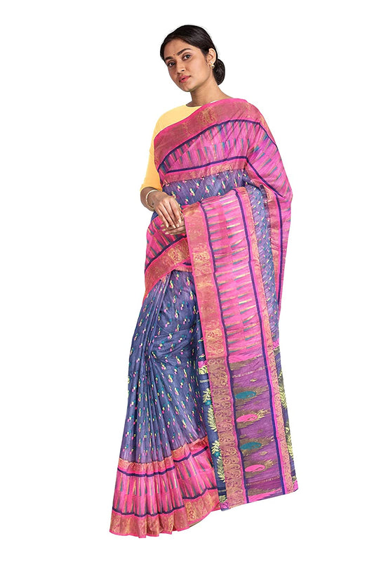 Pradip Fabrics Ethnic Women's All over Tant Jamdani Blue and Pink Color Saree