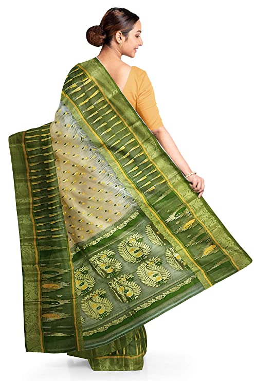Pradip Fabrics Ethnic Women's All over Tant Jamdani Green and White and Yellow Color Saree