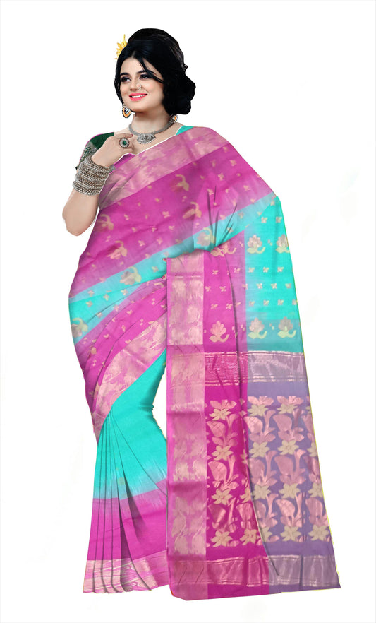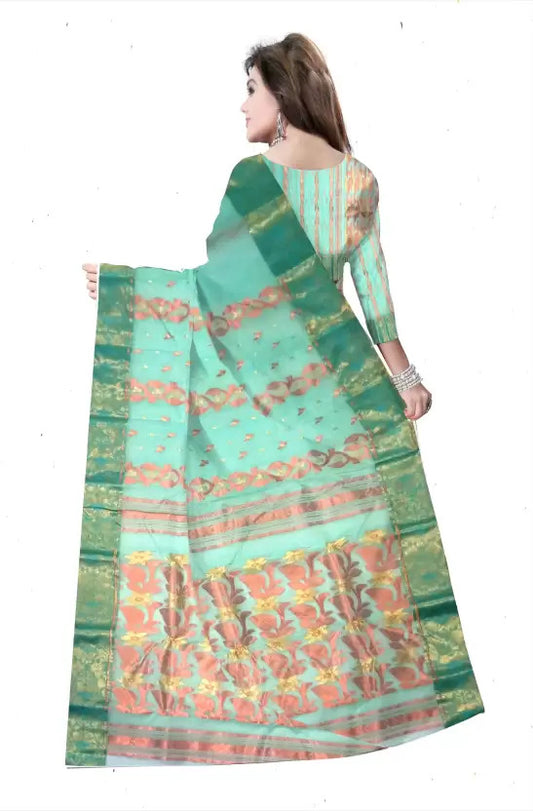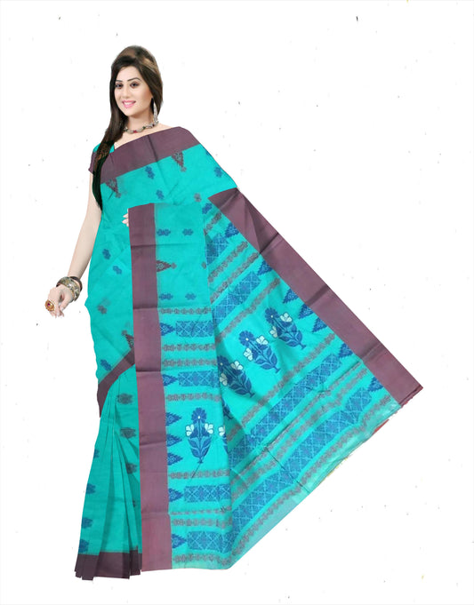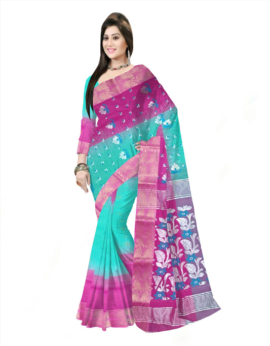 Pradip Fabrics Ethnic Women's Cotton Tant cotton Sea Green & pink Color Saree