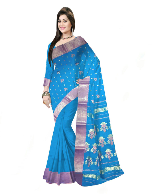 Pradip Fabrics Ethnic Women's Cotton Tant cotton sky blue Color Saree