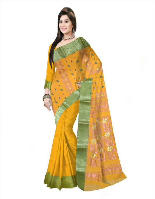 Pradip Fabrics Ethnic Women's Cotton Tant cotton yellow Color Saree