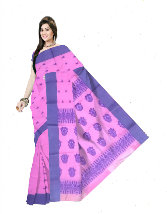 Pradip Fabrics Ethnic Women's Pure 100% Tant Cotton Pink Body and Blue Border Saree