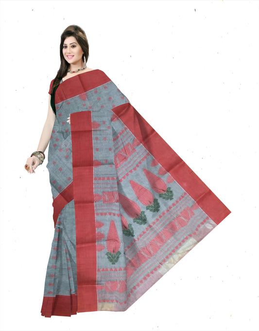 Pradip Fabrics Ethnic Women's Cotton Tant Gap Jamdani Red and Green Color Saree