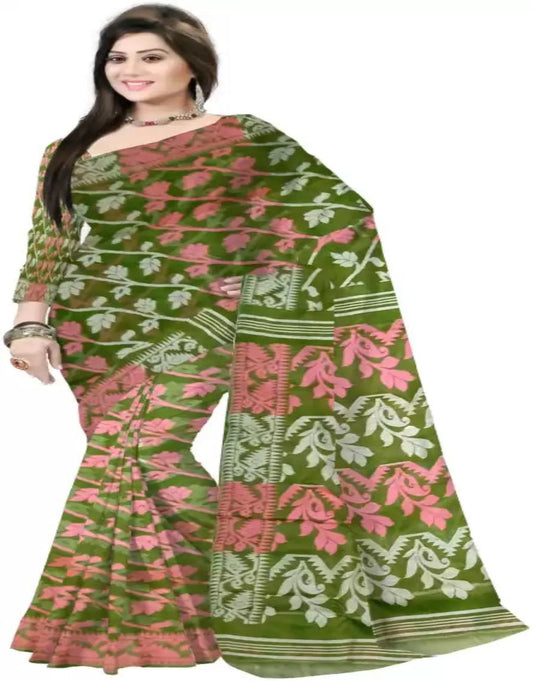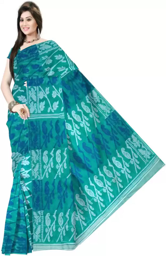Pradip Fabrics Ethnic Women's Tant Jamdani Jade Green Color Saree