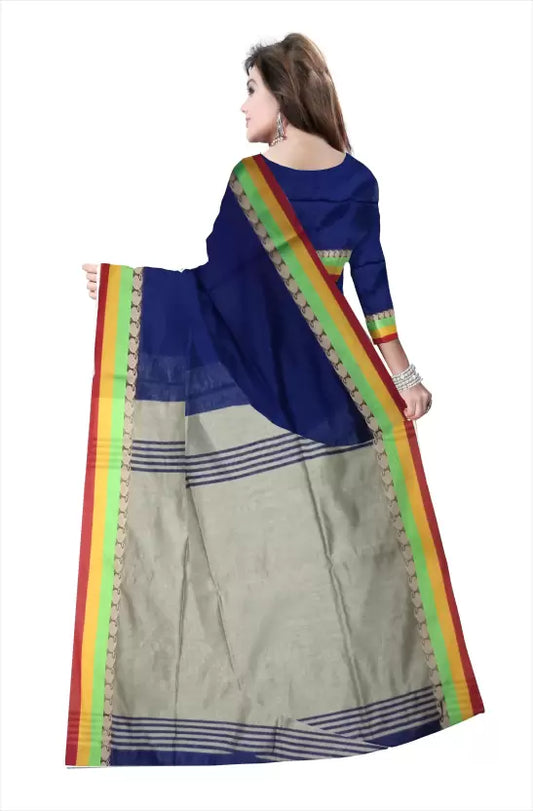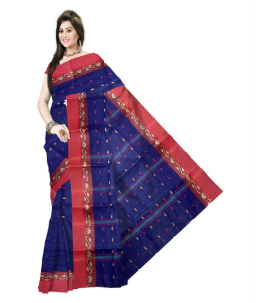 Pradip Fabrics Ethnic Women's Cotton Tant Navy Blue Color Saree