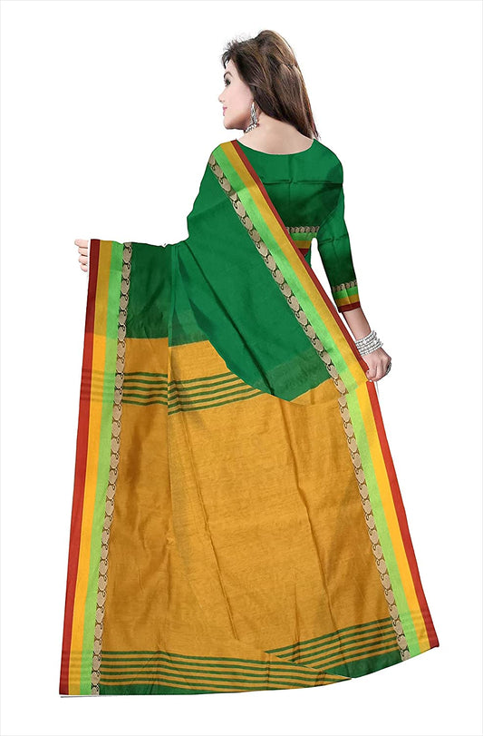 Pradip Fabrics Ethnic Women's Green and Yellow Color Saree