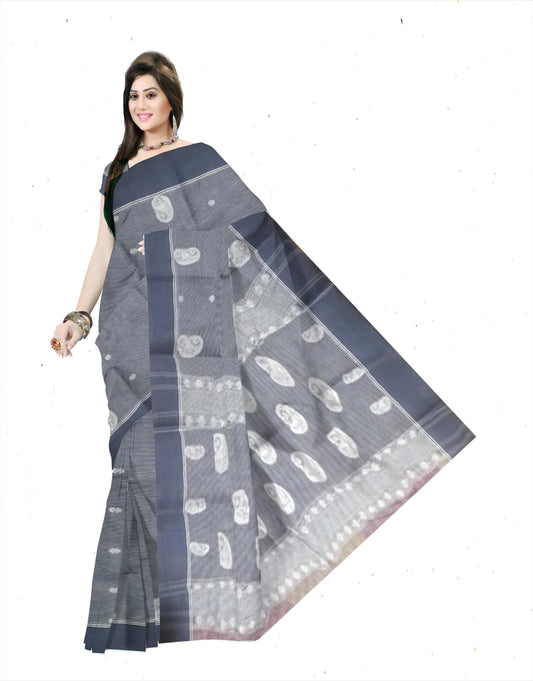 Pradip Fabrics Ethnic Women's Pure 100% Tant Cotton Slate Body and Black Border Saree