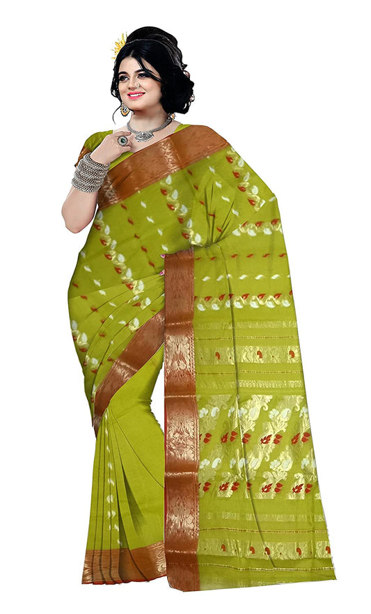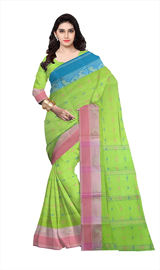 Pradip Fabrics Ethnic Women's Tant Cotton Light Green Color Saree