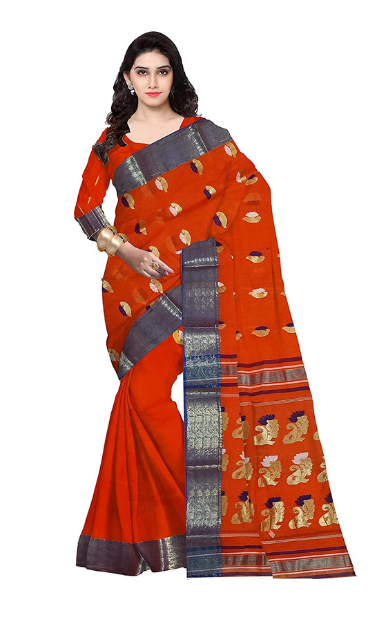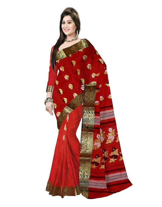 Pradip Fabrics Ethnic Women's Tant Cotton Red Color Saree