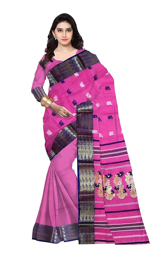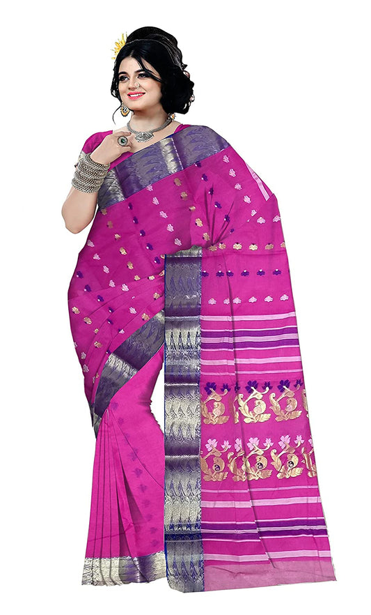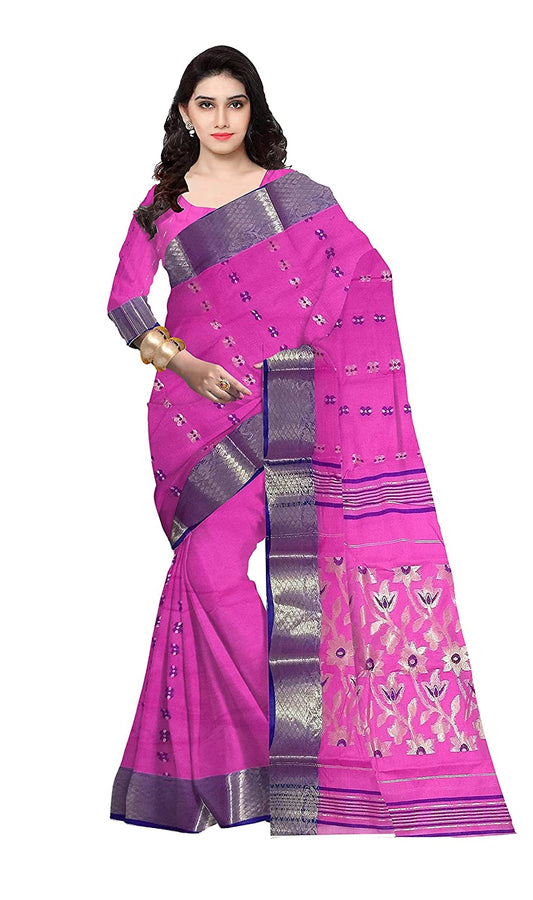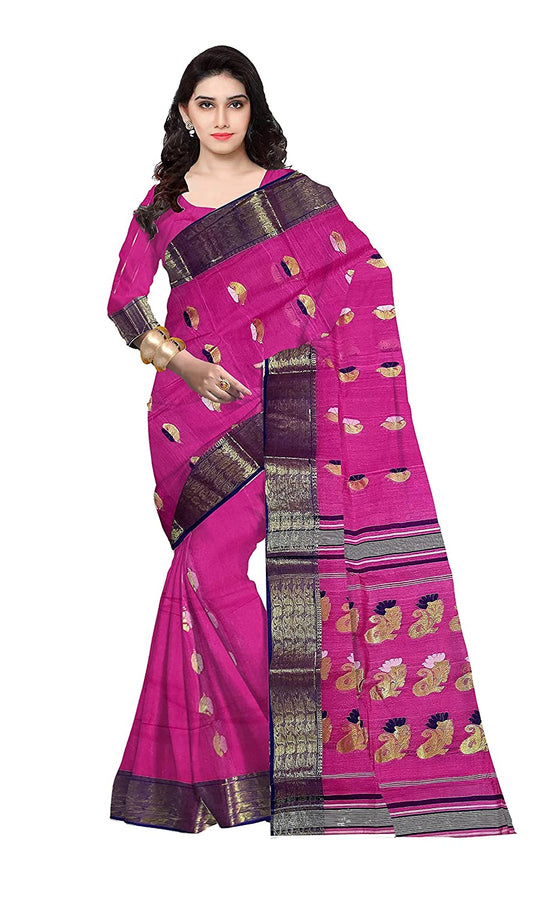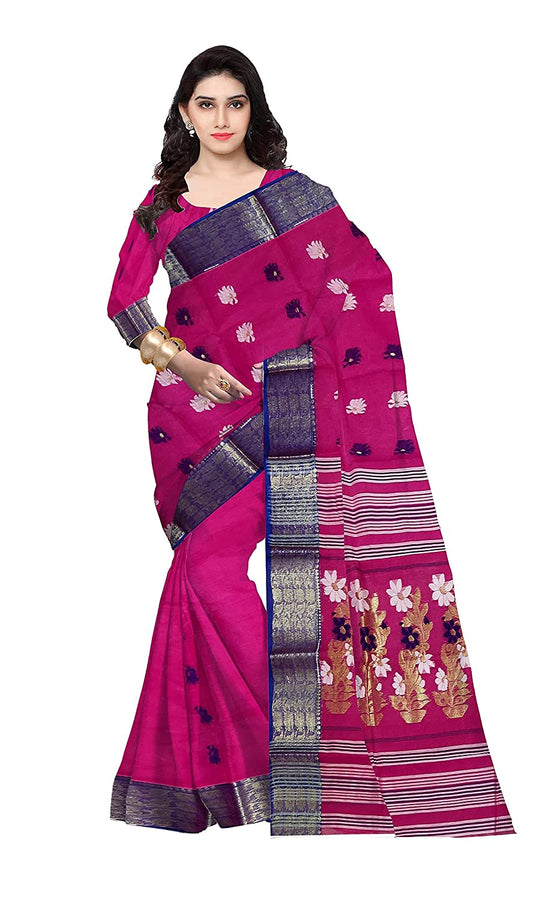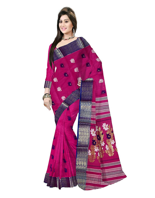 Pradip Fabrics Ethnic Women's Tant Cotton Dark Pink Color Saree
