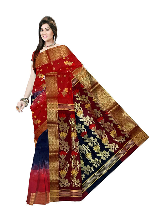 Pradip Fabrics Ethnic Women's Tant Silk Black and Red Color Saree