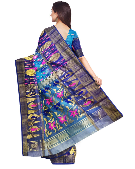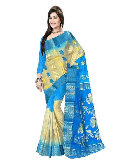 Pradip Fabrics Ethnic Women's Tant Silk Blue and Aqua Color Saree
