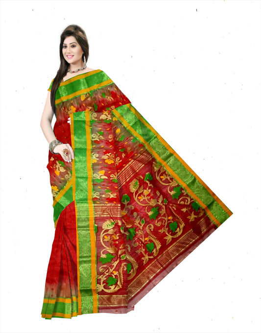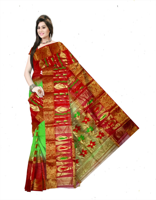 Pradip Fabrics Ethnic Women's Tant Silk Benarasi Red and Green Color Saree