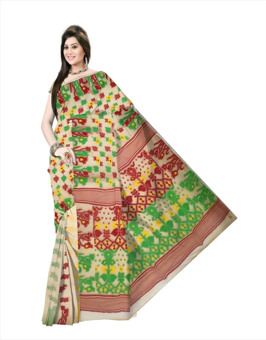 Pradip Fabrics Ethnic Women's Tant Silk All Over Dhakai Jamdan Brown Color Saree