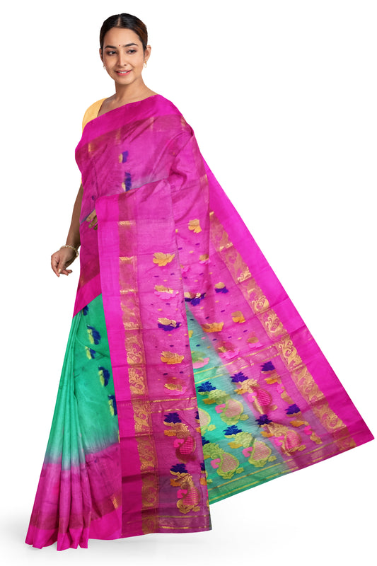 Pradip Fabrics Ethnic Women's Tant Silk Green and Pink Color Saree