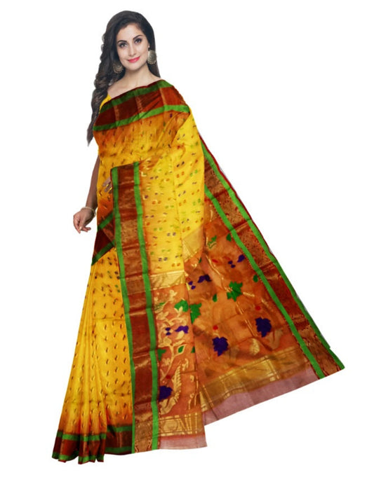 Pradip Fabrics Ethnic Women's Tant jmdani Yellow Color Saree