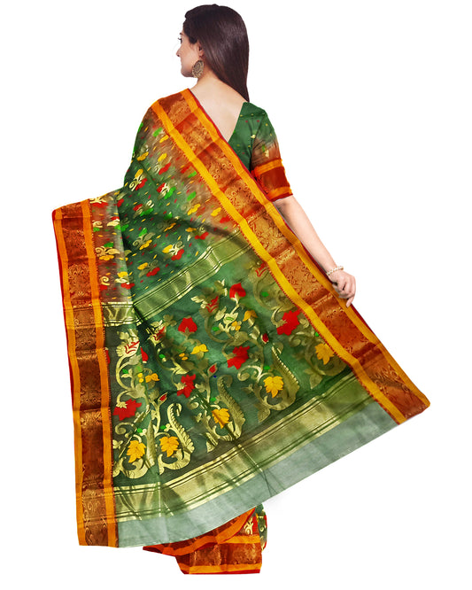 Pradip Fabrics Ethnic Women's Tant Silk Benarasi Dark Green Color Saree