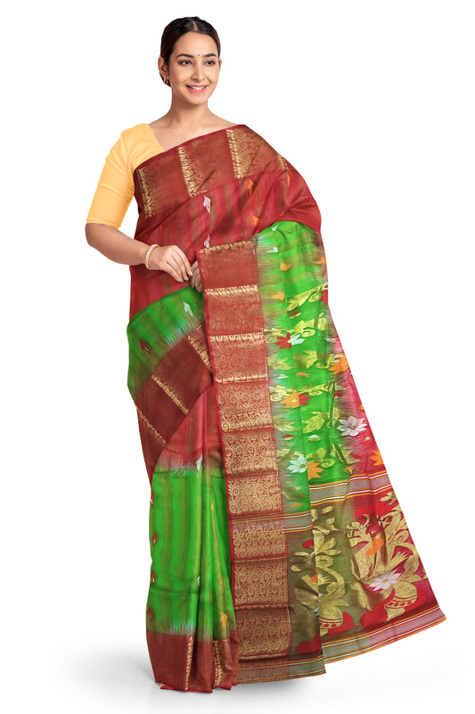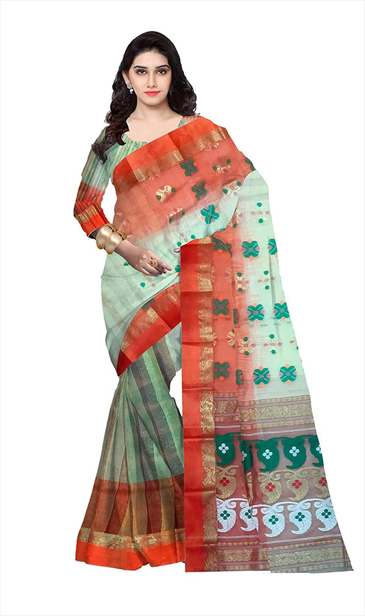 Pradip Fabrics Ethnic Women's Tant Silk Red and Green Color Baluchuri Saree