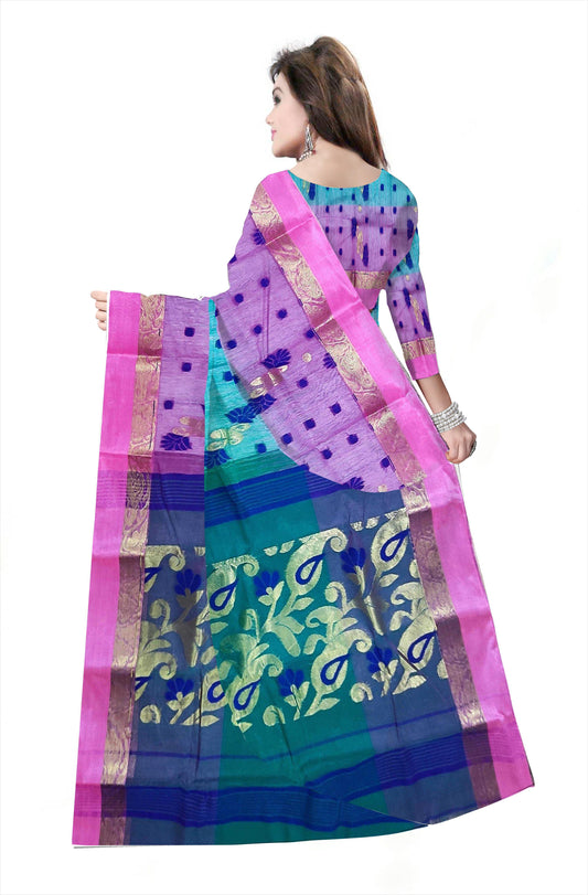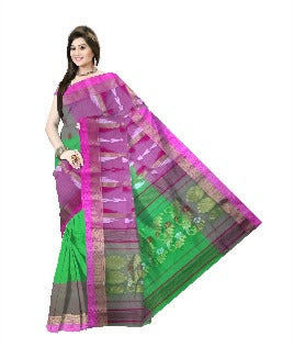 Pradip Fabrics Ethnic Women's Tant Silk Soft Green and Pink Color Baluchuri Saree