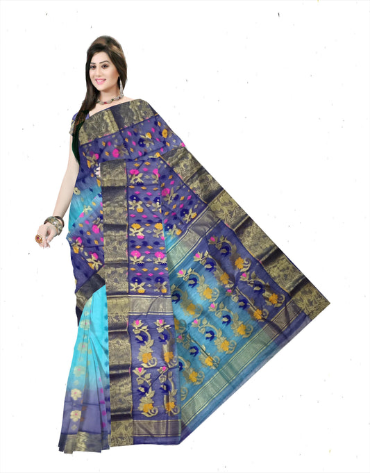 Pradip Fabrics Ethnic Women's Tant Silk Sky Blue Color Saree