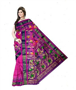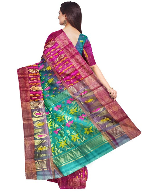 Pradip Fabrics Ethnic Women's Tant Silk Sea Green and Pink color Saree