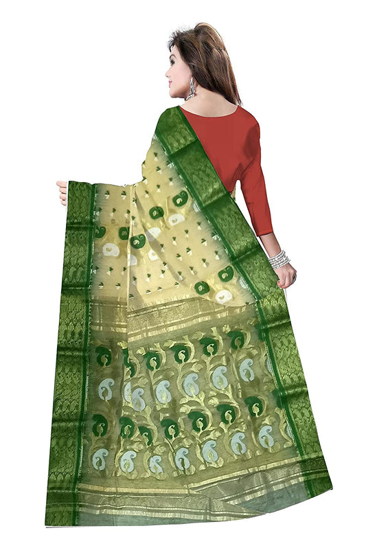Pradip Fabrics Ethnic Women's Tant Silk White and Green Color Saree