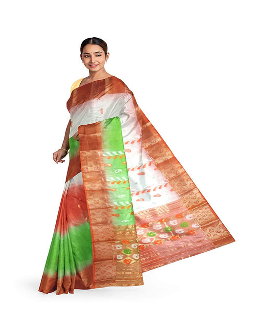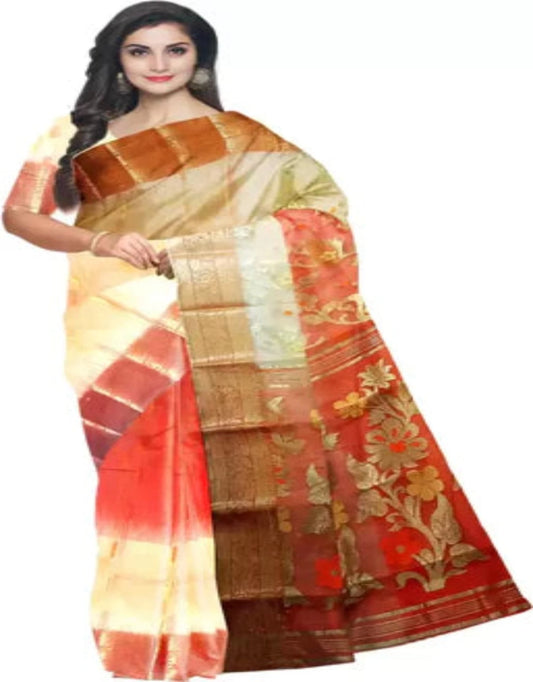 Pradip Fabrics Ethnic Women's Tant Silk White Orange Color Saree