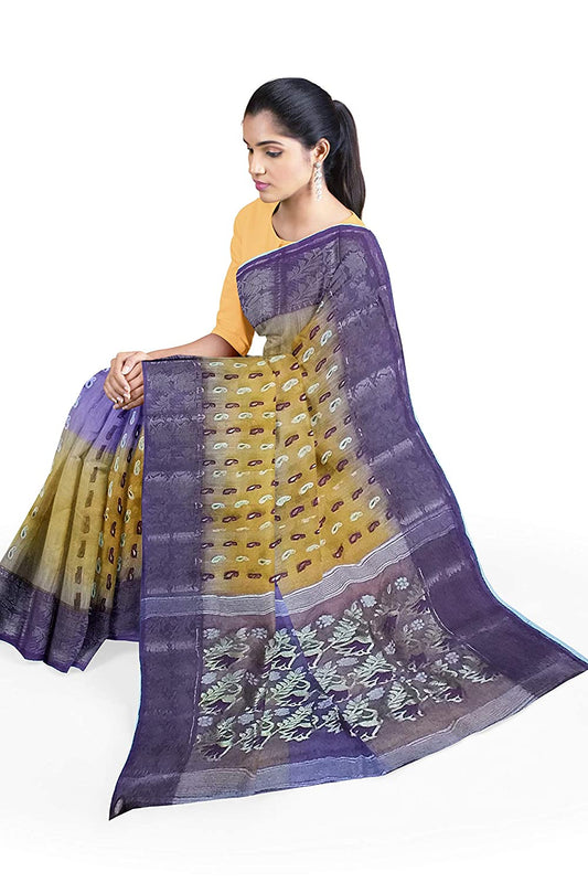 Pradip Fabrics Ethnic Women's Tant Silk Yellow Color Baluchuri Saree