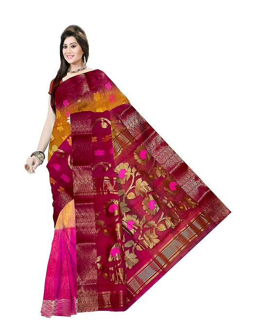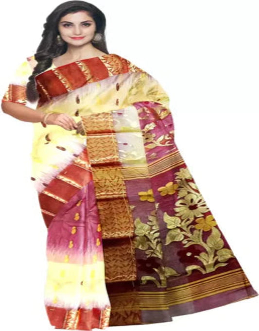 Pradip Fabrics Ethnic Women's Tant Silk Yellow and Red Color Baluchuri Saree
