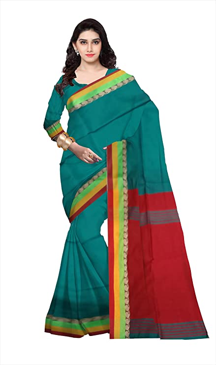 Pradip Fabrics Ethnic Women's Teal and Red Color Saree