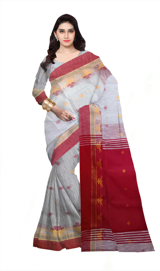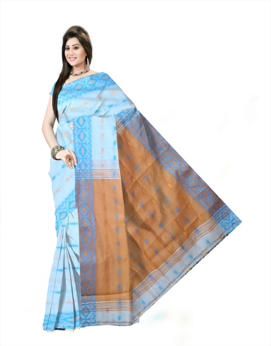 Pradip Fabrics Tant Tussar Silk Light Blue Color Saree