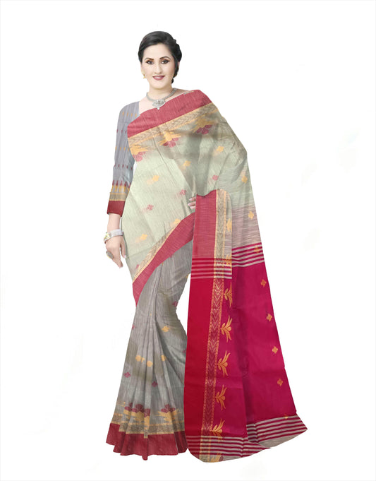 Pradip Fabrics Tant Silk Light Green And Pink Color Saree
