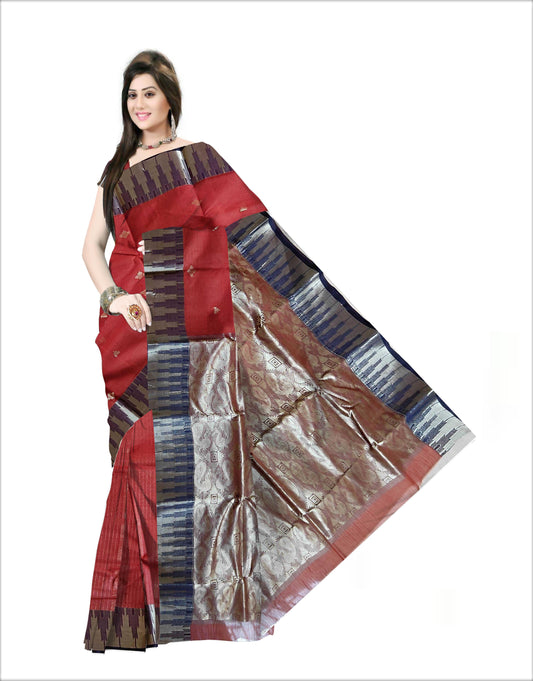 Pradip Fabrics Woven Brown Color Pure Tant cotton Saree