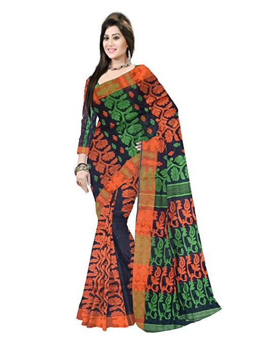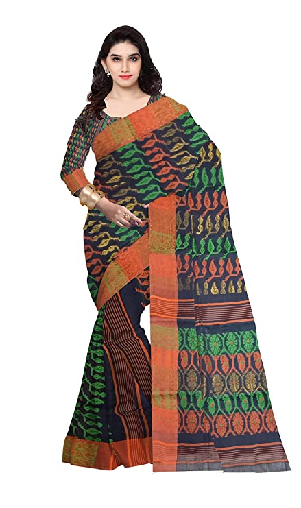 Pradip Fabrics Woven Tant Cotton All Over Dhakai Jamdani Black Saree