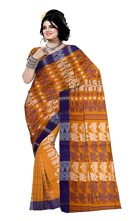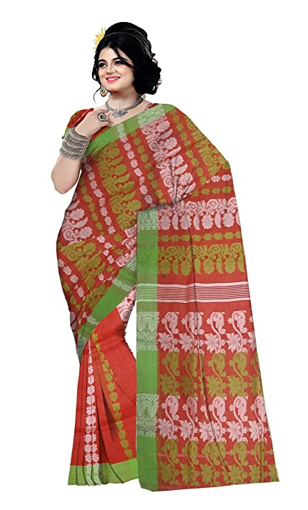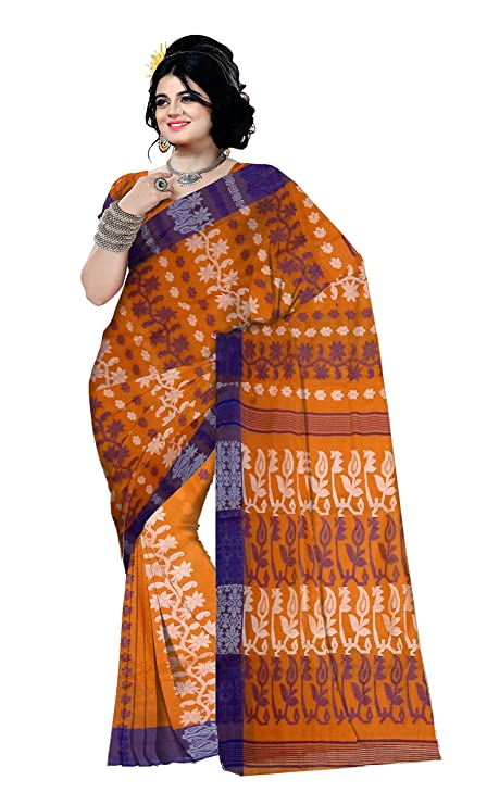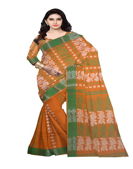 Pradip Fabrics Woven Tant Cotton All Over Dhakai Jamdani Orange Saree