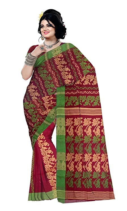 Pradip Fabrics Woven Tant Cotton All Over Dhakai Jamdani Maroon Saree