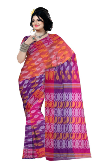 Pradip Fabrics Woven Tant Cotton All Over Dhakai Jamdani Pink Blue , Yellow Tri Color Saree