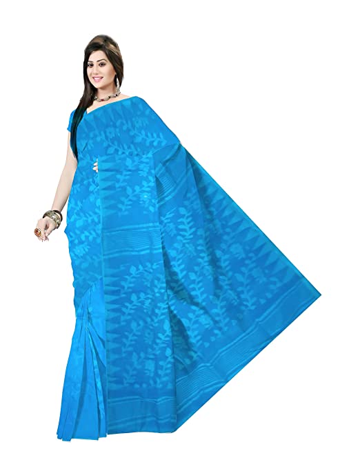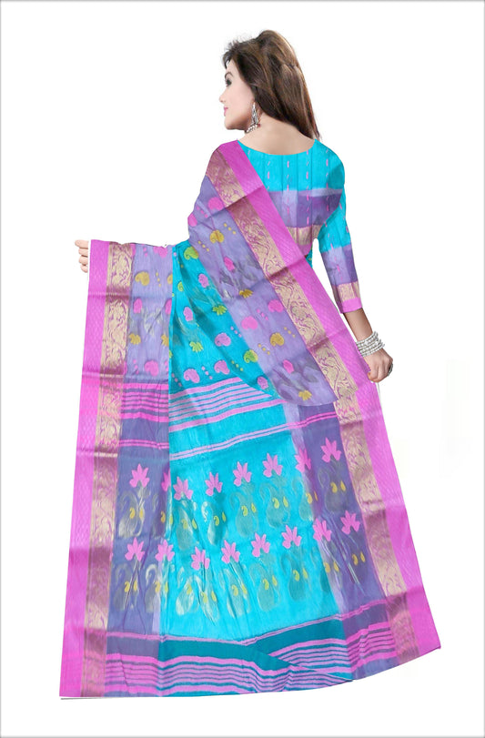 Pradip Fabrics Woven Tant Silk Gap Dhakai Jamdani Aqua Saree