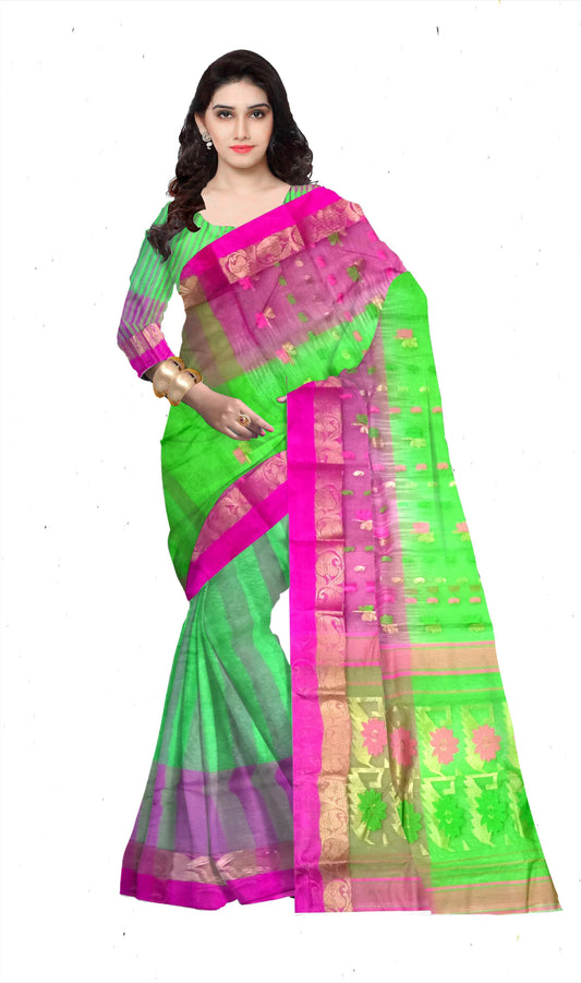 Pradip Fabrics Woven Tant Silk Green color Blend Saree