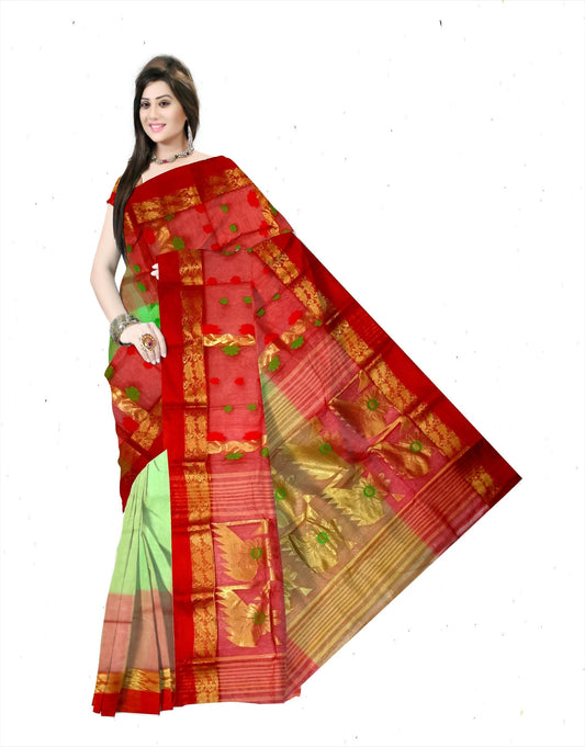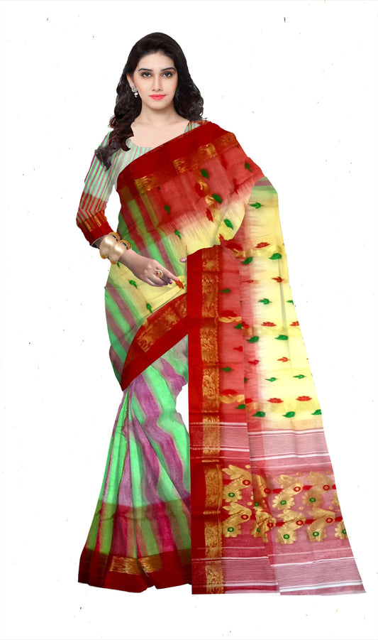 Pradip Fabrics Woven Tant Silk Green Yellow & Red Color Saree