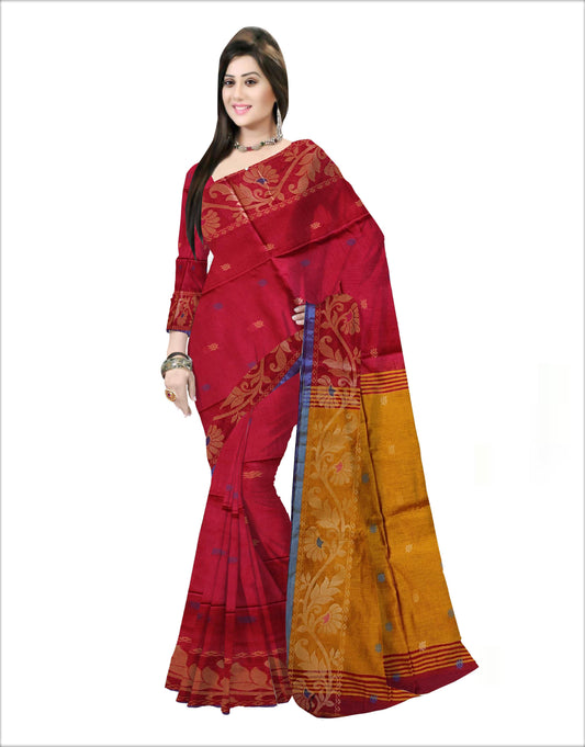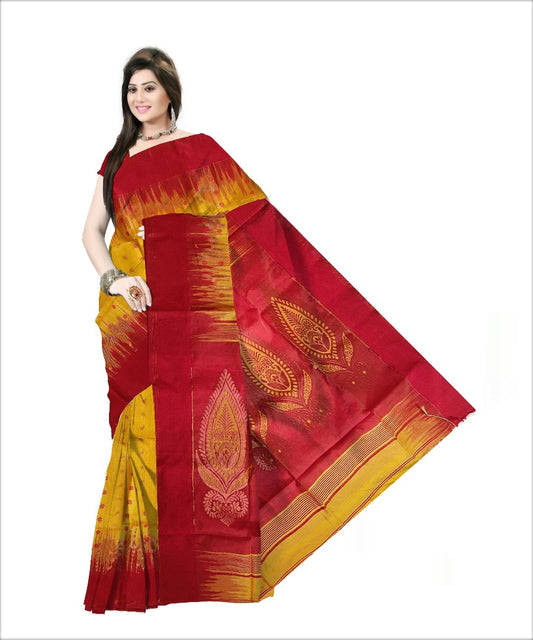 Pradip Fabrics Woven Red and Yellow Color Soft Handloom Saree